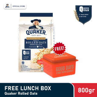 Quaker Rolled Oat 800g FREE LunchBox Quaker Rolled Oats 800g FREE Quaker Lunch Box BENEFITS of OATMEAL 1. Quaker is believed to be the number 1 oatmeal brand in the world. 2. Made from 100 percent oats need Australia. 3. With the goodness of oatmeal High in fiber, helps lower blood cholesterol levels and maintains the function of the digestive tract. DESCRIPTION OF HOW TO SERVE QUAKER Rolled Oat 1. Add 4 tablespoons (35grams) to the pot and fill it with 240 ml of water 2. Cook for 5 minutes 3. Transfer the oats to a bowl, and the oats are ready to serve. Can be consumed at any time with toppings you like, such as: fruits, honey, milk, shredded etc. HOW TO SERVE 1. Pour 35g of Quaker Oat and add 210 ml of hot water or low-fat hot milk. 2. Stir until evenly distributed. How to Store 1. Store at room temperature in a dry place 2. After opening, store the Quaker in a closed container or pack clip with a snack clip. 3.Maximum product shelf life is 18 months BPOM RI ML 230509051216 MUI LPPOM 00190092561218 Visit Youtube and Instagram Quaker: Quaker Indonesia for tips on presenting Quaker creatives. Package Contents 1 pouch Rolled Oat FREE 1 piece Lunchbox