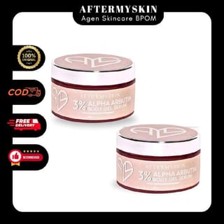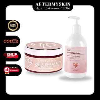 AFTERSKIN / AFTERMYSKIN WHITENING BODYCREAM 10X ALPHA ARBUTIN 250GR Body Cream with ALPHA ARBUTIN and CROMABRIGHT formulas which are derivatives of Hydroquinone, which is able to help brighten, moisturize, remove scars, even out skin tone and is able to nourish the skin so that the skin looks healthier, softer, smoother and radiant. - Light texture, non-sticky, easy to absorb - Soothing Lotion Scent - Safe for Pregnant Babies, Busui and all skin types - Can be used at any time (3-4x per day) (when outdoors it is recommended to use sunblock/lotion with SPF) CHROMABRIGHT SEEDS 30GR Bibit chorme is a premium body cream formulated for difficult white/bright skin with active ingredients ALPHA ARBUTIN and CHROMABRIGHT with maximum doses so that it is able to inhibit excess melanin production and focuses on skin that is difficult to white, uneven skin tone, dullness, black fold areas, stubborn scars - Light texture, non-sticky, easy to absorb - Soothing scent - Safe for Busui and normal skin types (not for Bumil and Sensitve skin) - Can be used at any time (3-4x per day) when outdoors, it is recommended to use sunblock/lotion with SPF Suggested use : Make sure the skin condition of the body is clean and dry, apply HB Alpha Arbutin to the whole body, massage slowly, make sure HB is completely absorbed, apply Chrome Seeds to the entire body/parts of the body needed (after using HB Alpha Arbutin). For maximum results, use it regularly and accompanied by the use of Afterskin body soap. *Discontinue use if irritation, itching or redness of the skin occurs BPOM HB Alpha Arbutin: NA18240116280 Chromabright SEEDS: NA1824011034 Aftermyskin UV Protection Body Lotion 250 ML Body lotion formulated to provide protection from UV rays while maintaining moisture and elasticity of the skin. Enriched with collagen and copper peptide is able to help rejuvenate the skin, increase collagen production and reduce signs of aging. Advantages - Light texture, non-sticky, easy to absorb, leave no residue - Soothing soft scent - Safe for Bumil, Busui, all skin types are normal and not sensitive - Safe to use every day Body whitening soap with 10% niacinamide and 10 other whitening active ingredients Able to brighten the body within one week Benefits: • Brightens skin • Fades dark spots and back acne • Removing stripes on the skin • Fade scars • Eliminates unpleasant body odor • Disappears blackness in the armpits and groin How to use: • Wet the soap until foaming • Apply to the body area • Let stand for 2-5 minutes then rinse thoroughly