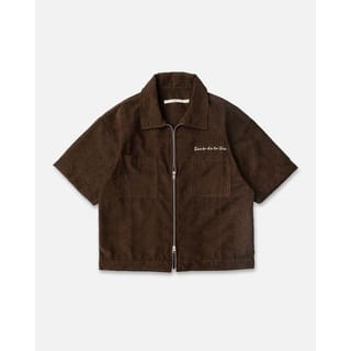 UNCLEJIN Virgil Boxy Double Zipper Corduroy Shirt - BROWN, L