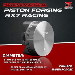 ACTIVE PERFORMANCE, AGGRESSIVE SPEED 10X MORE POWERFUL MOTOR SOLUTION Noted: ⚠️ PLEASE APPRECIATE THE HONESTY OF MSME TRADERS BY GIVING THEM 4 OR 5 STARS. ⚠️ BY GIVING A GOOD RATING, YOU INDIRECTLY SUPPORT THE ADVANCEMENT OF MSMES AND INDONESIA :). ⚠️ IF THE GOODS DO NOT MATCH THE DESCRIPTION, YOU CAN COMPLAIN VIA CHAT, WE WILL SERVE ALL COMPLAINTS UNTIL IT IS FINISHED Product: Piston Kit Material: Super Forged Size: 54mm 54.5mm 55mm 56mm 57mm 58.5mm 59mm 60mm 61mm 62mm 62.5 63mm 63.5mm 64mm Pin 13 WHY PISTON RX7 RACING? ⚙️ Priced. ⚙️ Made from the World's Top Quality Materials. ⚙️ Making the Power Motor Great ⚙️ Larger Diameter ⚙️ Suitable For Daily and Racing. ⚙️ Super Forged Base All RX7 Racing Products Have Been Performance Tested Using Dynotest by Prioritizing the "Safety, Durability, Quality" Factor So That It Can Meet the Needs of Your Favorite Motorcycle Modification. ISN'T IT EXPENSIVE TO DRIVE A MOTORCYCLE? YAAA RX7 RACING IS THE SOLUTION!!