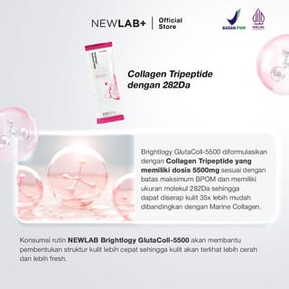 NEWLAB Pack 2 Box Brightlogy GlutaColl-5500 | Collagen Drink | BPOM Collagen Drink & Glutathione Drink for Brightening 30 Sachets - 2 Glutacoll 5500