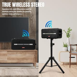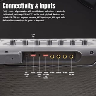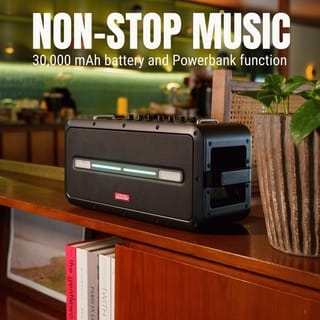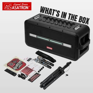 Experience Ultimate Party Power with Asatron Legend Series L-3001 MAX Powerful Deep Bass & Crystal Clear Sound Equipped with 2x Tweeters, 2x Midrange, and 1x Woofer to deliver deep bass sound, warm vocals, and clear treble for a balanced and stunning audio experience across all genres of music. 3 EQ Modes: All Range, Bass, and Vocal Easily adjust the sound for the perfect audio result to your taste. IPX5 Waterproof Designed waterproof with IPX5 standards, this speaker is ready to accompany your activities both indoors and during light rainy weather. True Wireless Stereo Connect two speakers wirelessly, so your room is filled with sound that blends and fills every corner from a single audio source. Power Bank Function Charge your device directly through the speaker, very practical for outdoor activities. Bonus 2 UHF Wireless Mics and Speaker Stand Enjoy crystal clear vocals and a stable wireless connection with two UHF Wireless Mics, ready to accompany a karaoke party with family and friends. Playback Options Bluetooth 5.3 USB Play TF Card TWS (True Wireless Stereo) Connectivity Options 1x USB-C Charging Port 1x USB OTG Port 1x AUX Input 1x AUX Output 1x Mic Input 1x Instrument Input 1x Headphone Monitor Port Specifications Speaker Drivers: 2x Tweeter (ø33mm) + 2x Midrange (ø78mm) + 1x Woofer (190 x 114mm) Bluetooth Version: 5.3 Output Power: 120W - 350W Battery Capacity: 30000 mAh Charge Time: Approx. 4 Hours Water Resistance: IPX5 (splash-proof) TWS Range: Up to 8M (open area) Product Dimensions: 44.8 cm (W) x 16.3 cm (D) x 20.1 cm (H) Product Weight: 7.6 kg What's in the Box 1x Asatron Legend Max (L-3001 MAX) 2x UHF Wireless Microphones 1x Speaker Stand 1x Carrying Strap 1x Type-C Charging Cable 1x AUX Cable 1x Remote Control 1x User Manual 1x Warranty Card Comes with a 1-year warranty.