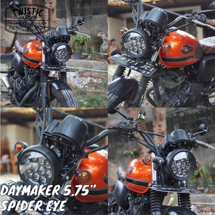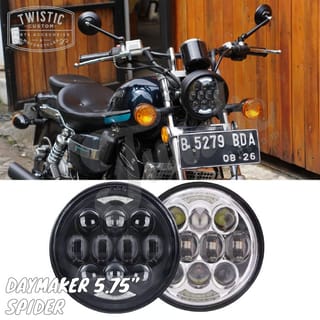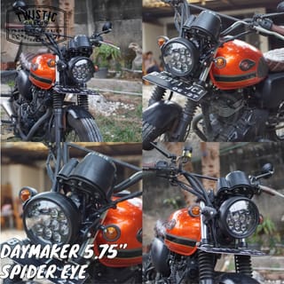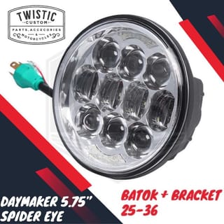 Spider Eye HiLo Daymaker Reflector LED Lamp 5.75" 80W ORIGINAL Items. The price is cheap because it takes a reasonable profit. Using 15pcs of OSRAM 5W LED Chips, SUPER BRIGHT QUALITY. The quality is unquestionable as these are imported goods. The price is above one / 1pcs (it is accompanied by a lamp shell and a small (25-36) or large (35-43) size lamp bracket), can be selected in the variant at the checkout process. The size of small and large is the size of the bracket only, not the size of the shell or lights. LED Projector lights are equipped with DRLs (Twilight Lights) suitable for Harley Davidson, Triumph, Kawasaki W175, Honda CB, Suzuki, Yamaha, Custom Motorcycles, Classic Motorcycles, Jeeps, Wranglers. Color of the headlamp 6000K ( White ) * This lamp must be connected to a DC voltage of 12volt (source of the battery/ignition, do not take current from the spull motor (because the voltage is unstable so the led headlamp is broken/does not turn on). Specifications: - Power: 80W - Certificates: CE,ROHS,IP67,DOT,E-Mark - Long life: 30000 hours - Beam : High Beam & Low Beam - Waterproof: IP 67 - Color Temperature: 6000K-6500K - Voltage: DC 10V~30V - Material: Diecast Aluminum Housing - Lens Material: PC - Mounting Bracket : Stainless Steel - Lamp Cup Material PMMA+ABS Completeness: 1 x 5.75" LED Daymaker Projector 1 x Against 1 set of light brackets (along with bolts) FOR ELECTRONIC ITEMS SUCH AS HEADLAMPS, PENNY STOPLAMPS, FOGLAMPS, DAYMAKERS ETC IT IS REQUIRED TO RECORD TEST VIDEOS WITHOUT PAUSE USING 12V BATTERY We do not accept any complaints about items that have been installed / connected to the motor body cable or the condition has been installed on the motorcycle and Order / Transaction status completed. We have checked the goods before they are sent, if they are still returned, we will appeal by attaching proof of checking the goods on CCTV.