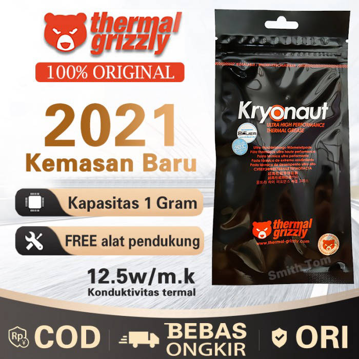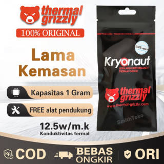 --READY STOCK! -- The new packaging equipped with the Kryonaut thermal grease product authenticity detection card was created especially for the extremely demanding applications and the highest expectations of the overclocking community. Kryonaut is also highly recommended as a top product for critical cooling systems in the industrial environment. * Designed for Overclocking || Designed for OVERCLOCKING (extreme wear) if you use it normally, it will definitely last * Excellent thermal conductivity || Has excellent thermal conductivity * No curing || Won't dry out * Long-term durability || Very long paste resistance * No electrical conductivity || CANNOT CONDUCT ELECTRICITY, this means that the thermal paste will make a short circuit, so your PC must be safe * Applicable with aluminum || Can be used with aluminum PRODUCT SPECIFICATIONS : * Thermal Conductivity : 12.5 W/mk * Thermal Resistance : 0.0032 K/W * Electrical Conductivity : 0 pS/m * Viscosity : 130-170 Pass * Specific Weight : 3.7gr/cm3 * Temperature : -250degC/+350degC For use, please see the tutorial video. 1 gram of thermal paste can be used up to 3x