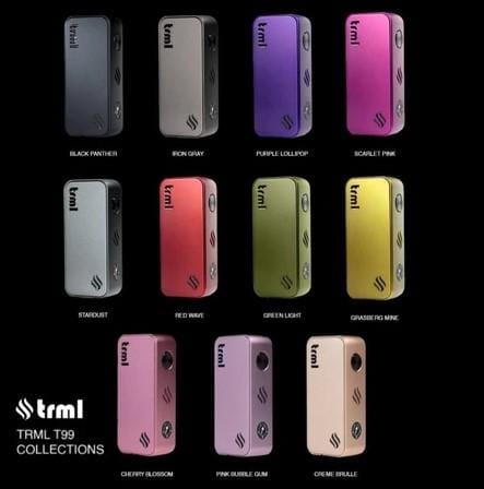 TRML T99 SPECIFICATIONS Size : 92.3*40*27mm Connector RDA : 510 Material : Aluminum alloy Power Output: 5.0W-99W Voltage : 6.2V-4.2V Output Voltage : 0.8V-8.0V Resistance: 0.08ohm-3.5ohm Charging Mode : USB TYPE-C Charging Current : 2000mA Battery : Single 21700 battery including 18650 connector Equipment in the box : - TRML T99 Device - USB Cable TYPE-C - Manual Book