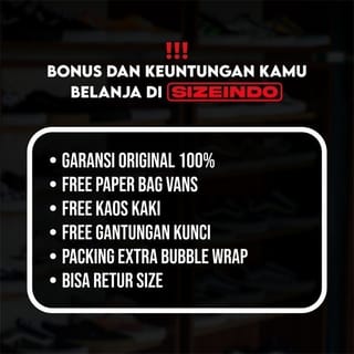 Original Authentic Guarantee & Trusted We only sell 100% Original Products, not kw, pk, etc Please check our IG testimonials (@Sizeindo) Buy 1 Get 3, You Can Simply Shop at Sizeindo & Enjoy Bonuses in the form of • Free Paper Bag Vans • Free Keychain / Keychain • Free Sticker • Free Socks #selama stock availability is still available Non-Conforming Goods = 100% Money Back Guarantee Made In Vietnam & China Global Market Available Size US 4 // EUR 35 // 22cm - US 12 // EUR 47 // 31cm (Ask For Another Size) Size is already listed in the size/size variation Ask about product availability, the sizes listed may change sometimes Make sure the size is correct before Checkout, Orders before 5 O'Clock will be sent that same day, the rest will be sent the next day. Items will be automatically updated within 24 hours Safe guarantees and shopping benefits at our !! • Fast process, abundant bonuses and safe packing because it uses double bubble wrap • Size does not fit, don't worry, we can change the size until it matches the size of your feet (note: the item is not used/dirty & shipping is at the buyer's expense) • Include video proof when unboxing if you want to redeem #Minggu holidays except Gojek & Grab