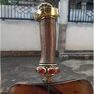 Welcome to our ^_^ store Handle / Deder / Danganan Keris Typical Balinese Style Lombok. This Keris handle is called Gerantim / Panji / Pepanjian. In the Past, Keris Handles, like this were only owned by Kings and Patihs. The material is made of a combination of Copper and Brass. Decorated with Siamese Gems Pre Order. Because the Creation has a High Level of Difficulty Thank You