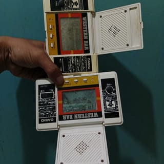 Western Bar Game By Casio A. Condition On, Buttons are quite responsive, Pixsel is bad, Loud Noise, no battery cover, per battery there is no B. Condition On, Slow button, Pixsel is not clear, the sound gk comes out, Battery cover is there. Pricing for both