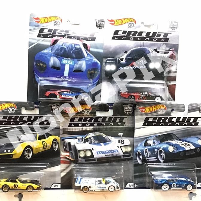 Hello welcome to our store HOTWHEELS CAR CULTURE CIRCUIT LEGEND LEGENDS complete set COLLECTOR ITEMS ALL METAL, RUBBER TIRES MADE IN THAILAND FILL: 1) PORSCHE 962 - ADVAN PERFORMANCE 2) WHITE MAZDA 787B (OPEN HOOD) 3) '16 FORD GT RACE RED 4) BLUE SHELBY COBRA DAYTONA COUPE 5) '69 COPO CORVETTE YELLOW THE CONDITION OF THE EXISTING GOODS IS IN ACCORDANCE WITH THE PHOTO (REAL PHOTO) BUBLE and CARD 98% UP STOCK IS SUBJECT TO CHANGE AT ANY TIME WITHOUT PRIOR NOTICE Can be ordered directly ka, thank you