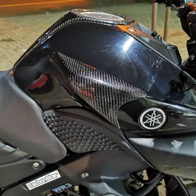 Carbon tank protector from CarbonStar for Yamaha MT15. It functions once to protect the tank from impact. You can also send 2 or install it directly in Modificazone. More info and other products : Gmaps : modificazone Youtube : Modificazone