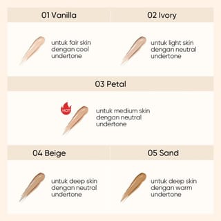 Cover All Perfect Cushion with a perfect finish in 1 pat, using Nano Silicone Crosspolymer 0.25 micron, providing high coverage and a flawless finish. With Raincoat Protective Film Technology, it seals off water and oil, lasting up to 12 hours to prevent dull and uneven color. Contains serum ingredients such as 5X Ceramide, Centella and Hyaluronic Acid, which moisturize, and strengthen the skin barrier. Double protection from the sun with physicochemically combined sunscreen, containing SPF35 PA++++ to protect the skin from the dangers of UV rays. Rubycell Puff Technology with teardrop shape, tight air vents to create a smooth, even and flawless finish. Medium to full coverage, lightweight texture and provides a long-lasting fresh and hydrated effect on the skin. Benefits: Close blemishes and flaws on the face in 1 pat Protects against UV rays with SPF 35 PA++++ Hold oil on the face for up to 12 hours with Raincoat Film Technology Maintain and strengthen the skin barrier with the content of Ceramide, Centella and Hyaluronic Acid Hero Ingredients: Centella Asiatiqa : moisturizes the skin Ceramide : Strengthens the skin barrier Hyaluronic Acid : Moisturizes the skin How to use: 1. Open the cushion cover and remove the protective sticker 2. Take enough by pressing the sponge on the inside 3. Tap all over your face 4. Close the cushion when it is finished using so that it does not dry out Available sizes : Full Size 11gr Refill Variants Available 01 Vanilla 02 Ivory 03 Petal 04 Beige 05 Sand BPOM Original Licensed Products EXP : 05/2027 Open Order 24 Hours Orders received before 14.00 are shipped the same day (except Sunday/red day/overload) Add (Add to cart) extra bubblewrap for added security of your package. The product before sending has gone through the QC process and has been confirmed to be good and functional. If there is a product error/lack of goods, it is mandatory to attach the unboxing video, product photo and shipping label.