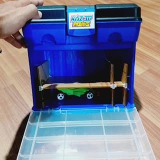 The Krisbow box according to the photo has been used with acrylic partitions minus the back of the lid has been broken small for the charger cable