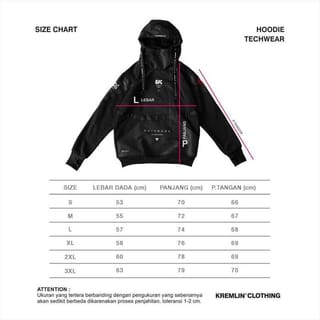 HAYABUSA features a design that is different from the rest inspired by ninja elements with a modern and futuristic twist. Geometric lines and shapes that give a high-tech impression. ---------------------------------------------------------------------------------------------- HAYABUSA THE PACKAGE INCLUDES: - Kremlin Totebag - Certified Authentic - Free Sticker 6 Pcs Product Details : - Full Neck Pullover Hoodie - Cotton Fleece & Milky Taslan - Webbing Appliance - Unisex Design - Made with the best quality stitching and screen printing ---------------------------------------------------------------------------------------------- [ SIZE CHART IS IN BACK PHOTO ] - Thank You