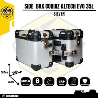 Coriaz is a bigbike adventure specialist motorcycle accessories brand since 2011 which has the tagline For adventure Made by Experience. Coriaz is also a technical accessories supplier to several ATPM / APM motorcycles in Indonesia. So that the quality of coriaz as a product does not need to be doubted. With good aftersales service and supported by a clear warranty, it will make Coriaz product users always feel safe when doing Adventure activities. Please visit the Coriaz website at the Coriaz Motoadventure Website. Using Aluminum Material that is lightweight, strong, and supported by angular corners made of plastic and the inner box layer of synthetic leather, making this box very safe and strong for adventure use in Indonesia and the world. High rainfall in Indonesia, requires this box to have good waterproof capabilities, so Coriaz is a box that has good waterproof ability during extreme rainfall, but not for soaking as a whole. In research for roads in INDONESIA with roads that are not too big and traffic jams and some damage, then in terms of size and features, it is VERY SUITABLE to be used in Motorcycle Adventure and adventure in Indonesia 1. SIDEBOX CORIAZ ALTECH EVO II package will get - lock UNIVERSAL RACK Heavuduty type Quicklock System (part Code USRC001) 1 set of box left right SIZE 35L each Installation instructions Manual Promotion Kit Coriaz This SIDEBOX is included with a Universal Heavyduty Rack that must be welded and set itself to your motorcycle. HOWEVER, Coriaz Motoadventure provides several HEAVYDUTY rack side brakes that are PNP to several Adventure Motorcycles in Indonesia. 2. Coriaz SIDEBOX package for CB150X + Siderack which is PNP to Honda CB150X with a note MUST HAVE USED THE TOP RACK CORIAZ. For the purchase of the top rack of the Honda CB150X, you can search by searching in the search field "Top Rack CB150X". Pannier Warranty (Top Box & Side Box) : Service Warranty and Limited Warranty • Limited Warranty is a warranty for Coriaz products that has a warranty for a certain period of time or special conditions according to the description on each product. Limited Warranty is valid for 12 months from the date of purchase. This Limited Warranty is specifically for water resistance / water resistance parts as long as the box does not fall, bump or other accidents that cause water resistance to be damaged. The first buyer is the first buyer according to the purchase invoice and registered on the Coriaz Motoadventure Website. • Service Warranty is a warranty for coriaz products that are sold and marketed. Service warranty is a guarantee that Coriaz products can be serviced at Coriaz Headquater also have spare parts and completeness if damaged due to accidents, competitions, or damaged by normal use. The Service Warranty is valid as long as the product is still sold by us and a maximum of 2 years after the product is discontinued. This warranty guarantees that all Coriaz products still have a high value even when you buy used. This type of warranty does not need to be registered because every repair will have a cost for parts and services. NOTE: *The warranty does not apply to products that you get from door prizes or discounts. *The warranty does not apply if the structure of an existing Coriaz product is altered or modified by a third party (Welded, subtracted, added, perforated and others). Before buying goods, make sure you understand the goods you are buying because if there is a mistake, type of color etc it is beyond our responsibility. If there are items that do not match the order in color or type, we will notify the customer via PM and it will still be sent when the customer agrees, if not, please please click cancellation. For preOrder items when you have purchased them, you cannot apply for cancellation for any reason. Goods sold at us have been checked and tested before being shipped. For the sake of mutual comfort, it is mandatory to do an unboxing video without a break from the time the goods are opened until it is finished, Without a complete video, it is likely that if there are complaints, we will not respond.*** Happy shopping, follow IG and Youtube @syndicatemoto Offline Shop – google maps "Syndicate Motor Indonesia".