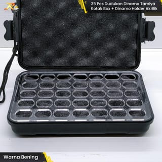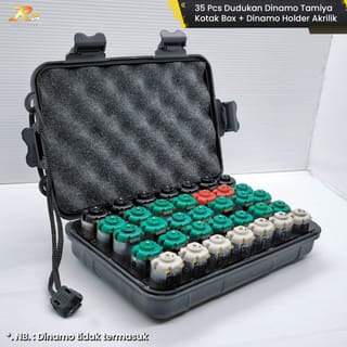 . | Tamiya Mini4WD | Tamiya Dynamo Stand Box Acrylic 3mm - 35 Pcs Motor Holder ** Tamiya Mini 4WD Motor Holder ** *. Dynamo is not included... *. Includes the box *. For Single Shaft Dynamo, this box can be fully filled... *. But for double shafts that cannot be fully filled, they must be mixed with single shafts *. 1st row single shaft, 2nd and 3rd row double shaft, 4th row single shaft again *. Detail: - Cast stand made of 3mm acrylic material - Can carry 35 Pcs Dynamo Tamiya - Can be for single shaft or double shaft dynamo - So that your Dynamo Tamiya is safe and easy to carry anywhere - Equipped with Foam Sponge on the top and bottom of the box for safety Tamiya Acrylic Dynamo Holder Box 3mm - 35 Pcs Motor Holder Mabuchi SMC Torque Tuned Atomic Tuned Light Dash Hyper Dash Power Dash Ultra Dash Mach Dash .