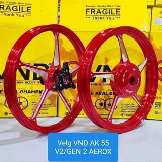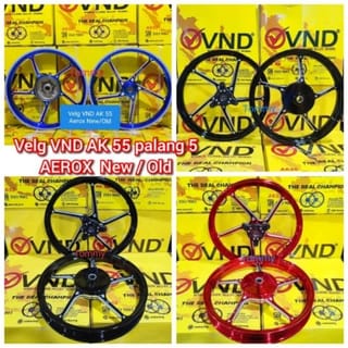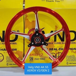 ● Products are guaranteed to be 100% original VND.. ● Alloy Wheels Type AK 55 bars 5 V1 & V2 (Order select in variants).. ●The above price for 1 set of front-rear wheels.. -Front width 160 ring 17.. Rear width 185 ring 17.. ● Plug and play (Plug and play) motor installation: Aerox New/Old 150/155.. ●Color: Black, Blue, Red, Purple, Silver, Orange.