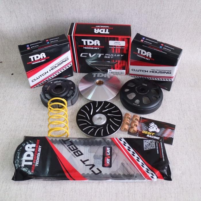 CVT UPGRADE Package For Motorcycles : - Yamaha Aerox 155 - Yamaha New Aerox *PnP (Plug and Play) installation is just a matter of installing Include : - TDR Bowl + Double Lining - TDR Pulley set - TDR Vanbelt KEVLAR Aerox - TDR Roller ( 7 / 8 / 9 / 10 / 11 / 12 / 13 / 14 / 18 grams ) - Per CVT ( 1000 RPM / 1500 RPM ) 100% Original TDR Racing Part Made in Thailand