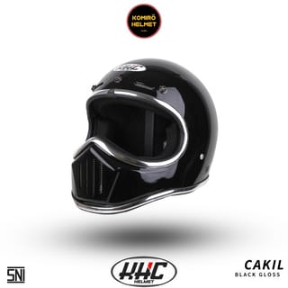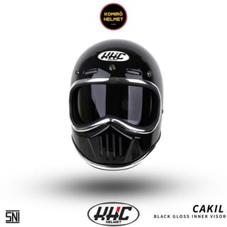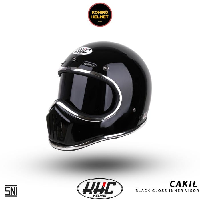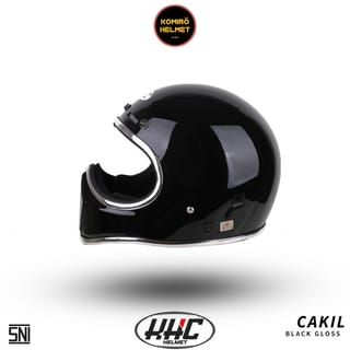 KHC Black Glossy SNI Official Cakil Helmet Retro Classic Vintage - Helmet + Inner