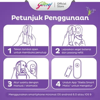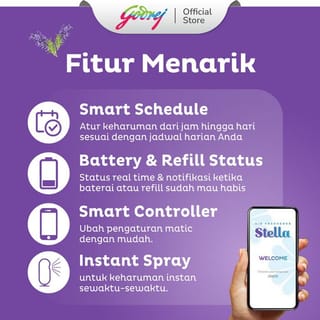 Stella Parfumist Smart Matic Device Set - Spray Automatic Air Freshener *random latte and lavender New, Stella Parfum'ist Smart Matic! The first Smart Air Freshener in Indonesia that can be controlled with just a touch of a finger through an app. With a variety of interesting features to make it easier for you to adjust the fragrance as you wish: - Smart Schedule: set the fragrance from hour to day according to your daily schedule. - Smart Controller: change automatic settings easily. - Battery & Refill Status: get real-time status and notifications when the battery or refill is about to run out. - Instant Spray: for instant fragrance at any time. How to use : - Download the Stella Smart Matic app on Google Play or Apple Store on your smartphone. - Connect the app with your Stella Parfum'ist Smart Matic tool. - Set up the Stella Parfum'ist Smart Matic tool to your liking (more than 1 tool can be connected). - Can be replaced with another refill with a size of 225 ml. Barcode: 8992745705413