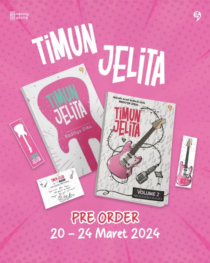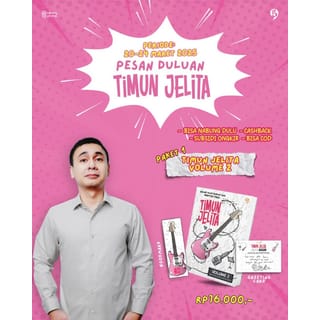 Book Specifications Book Title : TIMUN JELITA VOLUME 2 Author : RADITYA DIKA Publisher; IdeasMedia Book Price : 76.000 Size : 13x19 cm ISBN : 978-623-493-326-0 Synopsis "This book tells the story of Timun Jelita, a pop band duo consisting of a 40-year-old freelance accountant named Timun, and his cousin a female student named Jelita. This age difference makes their journey through the music world full of intriguing drama. Not to mention the pretentious behavior of their internship manager named Robert. In this volume 2 book, the story of Timun Jelita continues. We will follow the 11 chapters of the story of the band and all its peculiarities. From Timun learning to endorse products for the first time, Jelita who forced herself on a first date, to Robert who tried to fulfill the duties of a killer lecturer. All wrapped in joys and sorrows to make music for their latest mini album."