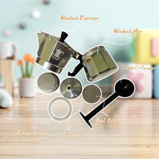 using a 3 cup/150 ml Mokapot and a 51mm 2 cup basket. The solution is to make proper espresso without a machine. Advantages of ordinary mokaput: - Able to hold 15-18 grams of coffee - Maximum extraction results - Concentrated espresso - maximizing crema - Easy to clean Specifications: - Using a 3-cup mokapot - basket 51mm 2 cups - Espresso results 40-50 ml - Coffee capacity -+18gr BONUSES!! - Measuring spoon & tamper How to use : 1. Prepare 15-18gr of finely ground coffee or 1 full basket. (Coffee must be finely ground) 2. Tamping coffee / compacting and installing puck screen 3. Insert the basket into the top of the mokapot and lock it using a rubber seal (the flat part sticks to the basket) 5. Install the funnel and put the two parts of the mokapot together. Tighten firmly. 6. Put the mocha pot d on top of the suitcase over low heat. NOTE: "If the coffee extraction is enough, first pour the extraction results (espresso) into a container/cup and then store the mokapot, storing the mokapot that is still hot in a cold place can cause the pressure in the mokapot to change drastically so that it will suck / vacuum air from the outside into the mokapot through the basket gap". NOTE: - Ask for stock first before checking out. - Read and understand the description of each product well. Purchased items are non-refundable. - Not receiving a return due to wrong purchase/selection of the product. - Buy = Agree & Understand the store rules. Thank you and Happy Shopping...