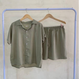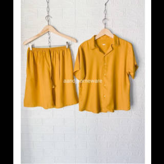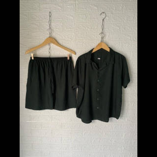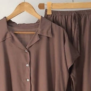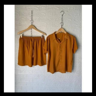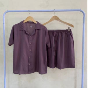 Pajamas Premium Plain Shirt Set - Pajamas Shorts Premium Plain Shirt Set by IQBAL BABYDOLL with collar shirt model, can be worn casually at home or made out of the house. The front of the shirt is full of buttons so you can make a busui, the sleeves are very suitable for those who wear hijab, and there are collar accents as well so you can stay cool at home. Advantages of Pajamas Plain Shirt Set Neat seams Cool and soft Thick fabric not neatly Elegant collar shirt model Best rayon material in its class Choice of beautiful and attractive colors Busui friendly, full button front shirt Material: Premium Rayon Cotton Size: Chest Circumference : 110 cm Pants Length : 45 cm Waist Circumference : 110 cm (Full Rubber) Thigh Circumference Pants : 64 cm Size Description (APPROX.) Hapyy Shopping #piyamawanita #bajutidurwanita #setelanwanita #onesetwanita #setelanbajutidur #wanitakekinian