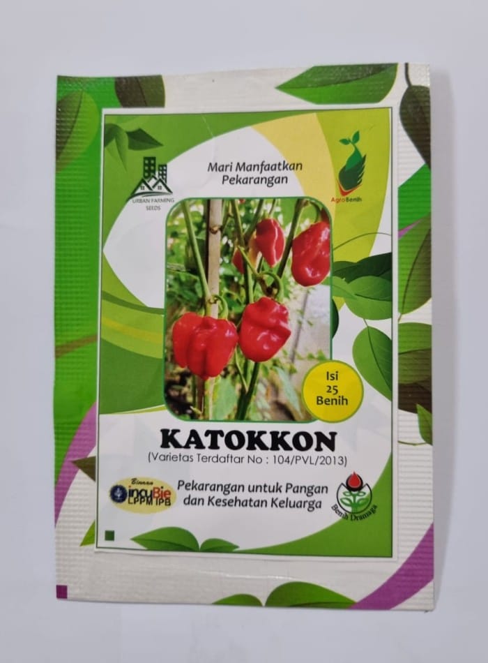 Katokkon Chili Seeds Packaging : 25 pieces Katokkon Chili is a type of chili or Lombok prima donna typical of Tana Toraja. It is shaped like a pepper but in a mini form, short round fat, with a normal size of about 3-4 cm with a cross-section measuring 2 to 3.5 cm, purplish-green when young, and refreshing red when the fruit is ripe to be processed into culinary ingredients to enhance the flavor of Tana Toraja's typical food