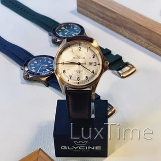 Welcome to the LuxTime store... SUPER PROMO GLYCINE Ready Stock! Send it immediately, no PO, no fuss! 100% NEW 100% Original! A CuSn8 bronze watch for patina lovers! Swiss automatic movement, Sapphire crystal! GLYCINE Combat 6 Classic Bronze 43 Blue Dial GL0286 - Caliber: GL224 26-jewel Swiss automatic movement (Sellita SW200-1 Elaborated) - 28800 vph - 38-hour power reserve - Hacking seconds - Case material: Bronze CuSn8 - Crystal: Domed sapphire crystal with 3 layers of antireflective coating on the underside - Strap / Bracelet : Brown calf leather strap - Water resistance: 50 m - Case diameter: 43 mm - Case thickness: 10.9 mm - Lug width: 22 mm - Lug-to-lug: 48 mm Package Contents: Watch, Tag, Glycine Box, User Manual, Warranty Card Note: Make sure the model, size, features, product description are what you want. Items that have been purchased cannot be exchanged/returned for any reason.