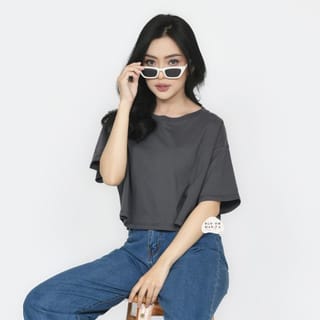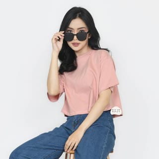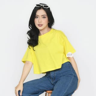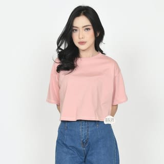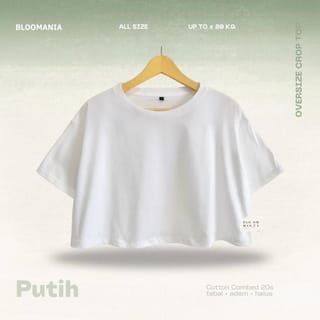 [BOLD] BLOOMANIA Plain T-Shirt CROPTOP OVERSIZED Cotton Combed 20s - Cream