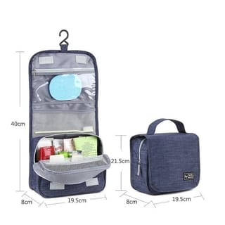 TRAVEL TOILETRIES BAG For those who like to travel, this product is a must-have. This bag is capable of organizing, storing and transporting all your toiletries and cosmetics. It has plenty of space for your essentials, such as soap, toothpaste, shampoo, perfume, toothbrush, comb, facial foam, mouthwash, etc. It is made of polyester with mesh material on the inside so that the caddy can be used in the bathroom without collecting water. This allows your personal belongings to stay dry and prevents mold. Not only suitable for traveling, this bag is also suitable if you carry it when exercising, on business trips, as a place to store toiletries in the bathroom at home or for gifts/souvenirs. Small, practical, and very useful! Highlights: - Polyester and mesh material - Dimension: 24cm (L) x 9.5cm (W) x 18cm (H) - Practical and easy to carry - Can be carried or hung - There are plenty of pockets for storage