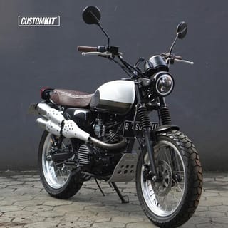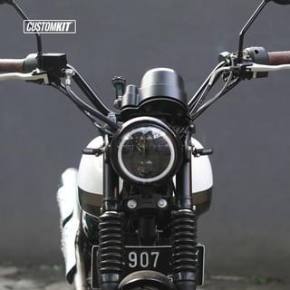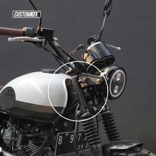 Original Design By CustomKit We designed this Front Fork Cover to add accents to the Front Shock of the Kawasaki W175. The minimalist design of parts is very suitable for standard Kawasaki W175 or those that have been custom in the style of Cafe, Tracker or Scrambler. In addition to adding accents, the Front Fork Cover serves to protect the front fork from scratches or abrasions and add dimensions to the front shock diameter. This Cover Fork is MADE OF IRON MATERIAL with a THICKNESS of 1 MM. The cutting process is very neat and precise. The installation method is very easy without any overhaul of the standard parts. Description : - PRICE LISTED FOR 1 Pack (2 pcs) - AVAILABLE COLOR : BLACK FINISH SEMI DOFF - FORK COVER SIZE : Height = 167 mm , Diameter = 35 mm - CONTENTS 1 PACKAGE : Cover Fork 2 Pcs.