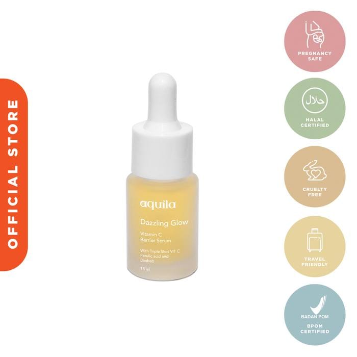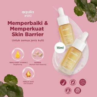 Description: Helps brighten, reduces dark spots, smoothes the skin, disguises fine wrinkles, stimulates collagen formation and as an antioxidant. makes the skin look smooth, supple and radiant Helps brighten, reduces dark spots, smoothes the skin, disguises fine wrinkles, stimulates collagen formation and as an antioxidant. Makes skin look smooth, supple and radiant Benefits: 1. Reduces dark spots on the face 2. Helps moisturize facial skin 3. Keeps the skin moisturized 4. Evens out facial skin tone How to use : Use it on the cleansed face, pour 3-4 drops on the palm of your hand then spread it all over the face and neck until it is absorbed. Use on the serum 15 minutes before direct sunlight, and at night before bed. Ingredients: Aquila, Niacinamide, Propanediol, Hydroxyethyl cellulose, Ferulic Acid*, Glycerin, Magnesium Ascorbyl Phosphate, Caprylyl 2-Glyceryl Ascorbate, Terminalia Ferdinandiana Fruit Extract, Panthenol (Vitamin B5), Centella Asiatica* Extract, Hydrolyzed Adansonia Extract, Chamomile (Anthemisnobilis)* Extract, Potassium Sorbate, Pueraria Mirifica Root* Extract, Citrus Hystrix Peel* Extract, Sodium Benzoate. BPOM: NA18210100401