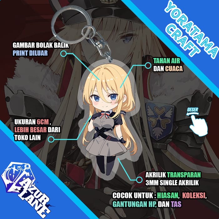 Bismarck Azur Lane Keychain, Anime Game Keychain