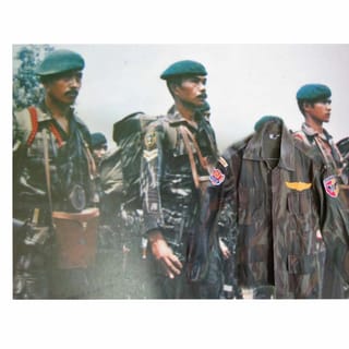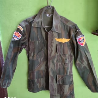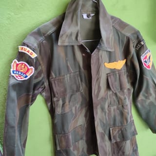 Seroja's ex-surgery shirt in the team... IFGABA was issued as a replacement for leopard stripes... used before the era of the Malvinas TNI during the era of General M Yusuf as the commander at that time... thick HBT material for eel poke... Small size is suitable for slender people or for living room displays, as a reminder of the history of our TNI.... Full Patch Operation Wings Plunge, Division and Headquarters Patch Width 48cm x Length 59cm... The bright color of the nos has not faded at all because it is only stored in the closet