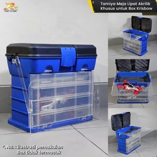 . | WTS | Tamiya Folding Table Box Krisbow Folding Table for Krisbow Tool Box Tamiya Mini 4WD *. NB : Box NOT included in the sale *. 2 Color options : -Black -Clear *. Detail: - Bolts included - Made of Acrylic material - Special for Krisbow Box - Foldable and very useful when used on the Tamiya Mini 4WD track - The left and right sides of the Krisbow Box must be perforated to attach the bolts Tamiya Acrylic Folding Table Krisbow Box - Krisbow Tamiya Mini 4WD Acrylic Table Box .