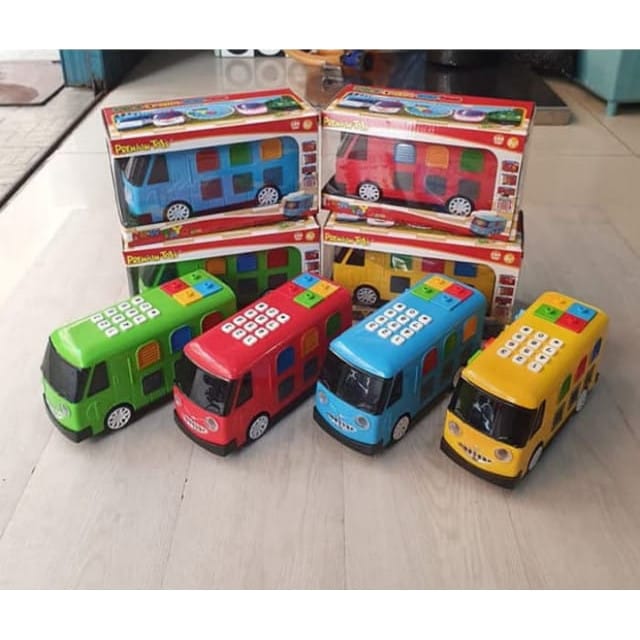 THE PRICE IS LISTED 1SET = 4 COLORS (BLUE, GREEN, YELLOW, RED) The latest tayo bus toys with the theme song tayo and bus are decorated with beautiful 3D lights accompanied by block toys that can be disassembled on the bus body according to the shape of the blocks, of course it can increase children's creativity. Tayo Bus is equipped with a distressed number digit.Kids must like Tayo more and more Description: *Can walk bump n go *There is a song Tayo Little Bus Hai Tayo, Hai Tayo, He is a small bus friendly to speed, slow down, Tayo is always happy Hai Tayo, Hai Tayo, he is a friendly little bus to speed, slow down, tayo is always happy''''''''.. *There is decorated with 3D lights *There is a block that can be disassembled *There are digit numbers that can be pressed/pressed (there is a sound) *Uses 3 AA batteries (battery not included) *ON/OFF button with 2 functions (Right(Song/Walking) Center(OFF) Left(Sound Digit Number) *Bus Size Length 20 cm Width 8 cm Height 9 cm *Package Size 24x13x11 cm