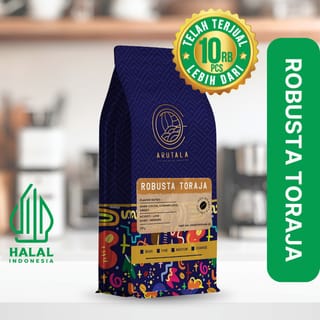 PRODUCT DESCRIPTION Welcome to Arutala Coffee, a place where coffee is more than just a drink, but rather a taste adventure experience. Taking us across Indonesia's unparalleled coffee wealth. Every Cups are a story of taste in themselves, coming from dedicated farmers which we support, creates fair and sustainable relationships. From the best coffee beans to the cup in your hand that has been certified Halal, we dedicate ourselves to ensuring true satisfaction. Come on discover the beauty of taste in every sip, and with Arutala, let's Welcome the morning with cheerfulness and warmth in a great cup of coffee usual. -ROBUSTA TORAJA COFFEE- The cultivation of Toraja Robusta Coffee is in Bokin Village, Rantebua, North Toraja Regency. Although it is not produced as big as Toraja Arabica, its bitter taste that is just right for many people makes this coffee very popular among coffee lovers. Packaging : Exclusive Flat Bottom Pouch 100% Robusta Coffee Planting area: Rantebua Toraja Netto 250 grams PIRT No. 5103671010408-26 TASTE PROFILE Flavor Notes : Dark Cocoa, Caramelized, Sweet Acidity : Low Body : Medium Aftertaste : Clean *Scaa cupping standard *How to brewing determines the taste profile CHOICE OF COFFEE SHAPE Seeds for longer storage and grinding themselves before use Coarse grind for french press, cold brew, chemex Medium/medium grind for syphon, aeropress, pour over (kalita, v60), vietnam drip Fine grind for mokapot, turkish, ibrik, tubruk Let's add your special greetings to the dear ones who get it! https://www.tokopedia.com/arutalacoffee/kartu-ucapan-special-moment-custom and provide details of your speech on the order record, max 100 characters/30 words. 😁 Enjoy