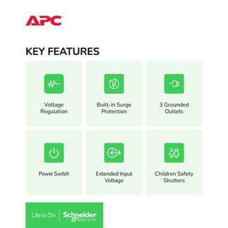 FEATURES - Power Switch with Built-in Circuit Breaker - Automatic Voltage Regulation (AVR) - Lightning and Surge Protection - Status Indicator LEDs - Grounded Outlets - Children Safety Shutters - 2-Year Warranty TECHNICAL SPECIFICATION - Output Power Capacity : 2000VA/1000 W - Nominal Output Voltage : 230V - Nominal Input Current : 6.25A - Acceptable Voltage Range Tolerance: 160-284 VAC - Voltage Regulation: ± 10% @ input range - Nominal Frequency: 50Hz - Response Time: 6 ms - Efficiency: >95% - Number of Outlets: 3 - Plug Type: Schuko - Cord Length : 1 meter - AVR & Surge Protection: All outlets - Joule Rating: 148 Joules - Dimensions (WxHxD): 210 x 110 x 132 mm - Net Weight : 3.72 kg - Audible noise at 1 meter from surface of unit : < 40 dB - Operating Temperature : 32°F to 104°F / 0°C to 40°C - Humidity: 0-90% relative humidity (non-condensing) - Certification: CE