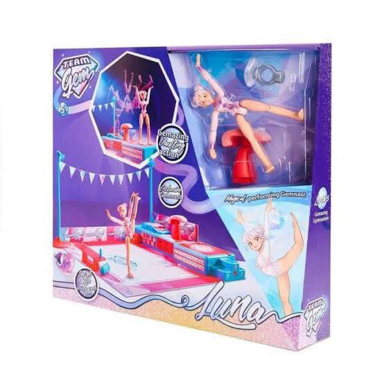 Description Team gem amazing gymnasium luna loves gymnastics and her favourite apparatus is the vault - can you help her perform some magic routines and achieve the elegant somersault. Gemazing gymnasium - Luna character profile: Precious stone: Moonstone Favourite Equipment: Beam glistening like a Silver moon, Luna is the princess of perfect vaults. Features & details Exclusive luna gemnast Secret skills inside each gem Balance, flip and land with gravity defying mystery - the magic is in your hands Collect them all to complete all the moves Includes 1 x luna gemnast, magnetic ring, vault, performance mat, winner's podium, role play accessories and trick sheet