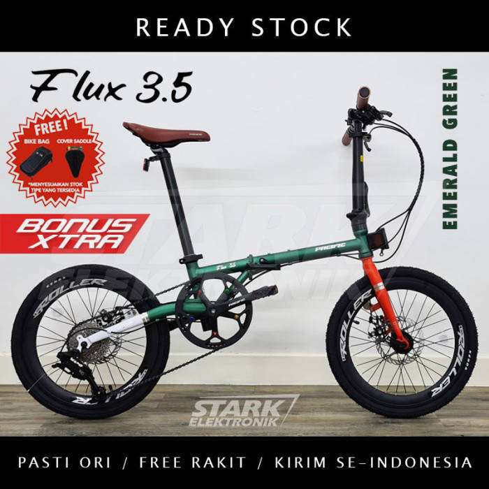 ✅ Free Shipping PROMO ✅ BONUS Bags, Bells and Saddle Covers ✅ BONUS EXTRA Pacific Bottles, LED Lights ✅ FREE Raft ✅ Standard SNI ✅ SEAL is not Display ✅ Factory Official Warranty 5 years ✔️ Please Chat DM before buying, to Check Stock Availability (Color &sizing) 🚲 PACIFIC FLUX 3.5 (16 INCH &20 INCH) Specifications (20 inch tires) : ➡️ Frame : Hi-Ten Steel 20" ➡️ Fork : Hi-Ten Steel 20" ➡️ Shifter : Blackbox SL-V4008 8 Speed rd ➡️ : Blackbox RD-V4008 8 Speed Brake ➡️ : Front &Rear Disc Brakes ➡️ Crank : Pacific Alloy 56T ➡️ Pedal : Foldable ➡️ Hub : 32 H ➡️ Rims : Roller Alloy Double Wall 20" ➡️ Tires : 20" x 1.50 seatpost ➡️ : Alloy 33.9 x 600mm ➡️ Stem : Alloy handlebar ➡️ : Alloy, W: 600mm Specifications (16 inch tires) : ➡️ Frame : Hi-Ten Steel 16" ➡️ Fork : Hi-Ten Steel 16" ➡️ Shifter : Blackbox SL-V4008 8 Speed rd ➡️ : Blackbox RD-V4008 8 Speed Brake ➡️ : Front &Rear Disc Brakes ➡️ Crank : Pacific Alloy 56T ➡️ Pedal : Foldable ➡️ Hub : 28 H ➡️ Rims : Roller Alloy Double Wall 16+ ➡️ Tires : 16 x 1 3/8 seatpost ➡️ : Alloy 33.9 x 600mm ➡️ Stem : Alloy handlebar ➡️ : Alloy, W: 600mm 🛠️ How to Assemble a Folding Bike: https://www.youtube.com/watch?v=fQLlP80d698 📦 DELIVERY RECOMMENDATIONS : 1. Jakarta, Tangerang, Depok select Gojek/Grab Instant. Send SEAL (assembled 80%) or full assemble (contact us) 2. Outside the above area, select Cargo delivery (SiCepat Gokil / JNE Trucking / Free Ongkir. Segel's goods have been 80%.